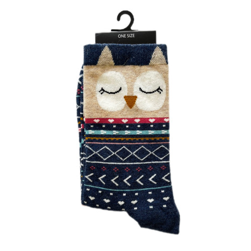جوراب نخی زنانه ساق بلند طرح جغد سورمهای برند چتیک