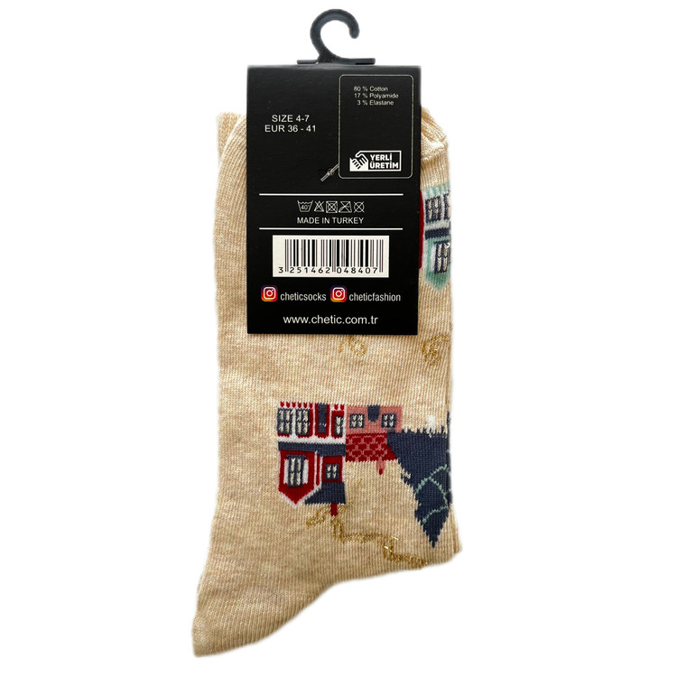 جوراب نخی زنانه ساق بلند طرح خانه برند چتیک