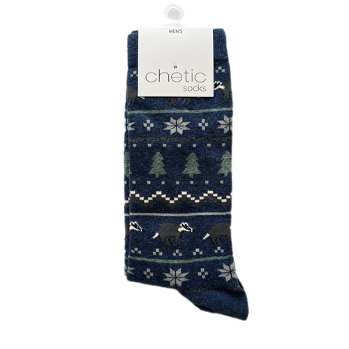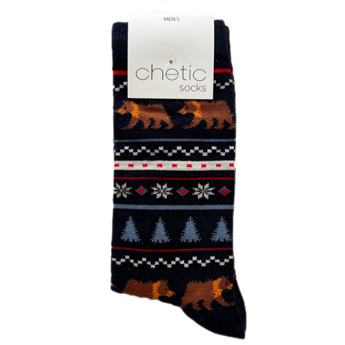 جوراب ساق بلند مردانه چتیک ترک طرح خرس و کاج سورمهای
